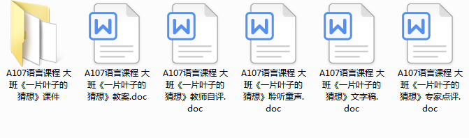 隐藏内容 下载地址 请先登录 已有21人解锁查看 活动目标: 1、欣赏散文诗,并尝试在理解散文诗的基础上根据画面信息仿编。 2、感受大自然的美好,萌发对文学作品的兴趣。 活动准备:课件、图片、音乐 活动过程: 一、引出散文诗,激发兴趣 ——今天我带来了一首散文诗,我先不告诉你们诗里说的是谁,念一段请你们一起听一听,看你们能不能猜出来。(念散文诗) ——你觉得它是谁?为什么? ——散文诗又没有说叶子,你从哪里听出来是说叶子的事情? ——你们猜对了吗,让我们一起来看着图片再欣赏一遍。(PPT图片) 小结:看来,我们大家都很熟悉叶子,我带来的这首散文诗就是关于叶子的,叫《一片叶子的猜想》 二、观察画面,理解散文诗 隐藏内容 下载地址 请先登录 已有21人解锁查看 有问题?找客服联系我们: 小学教师,到公众号 备课无忧 初中教师,到公众号 备课高手 高中教师,到公众号 备课专家 小学家长,到公众号 学霸妈妈 初中家长,公众号 状元天天练 高中家长,到公众号 拔尖资料