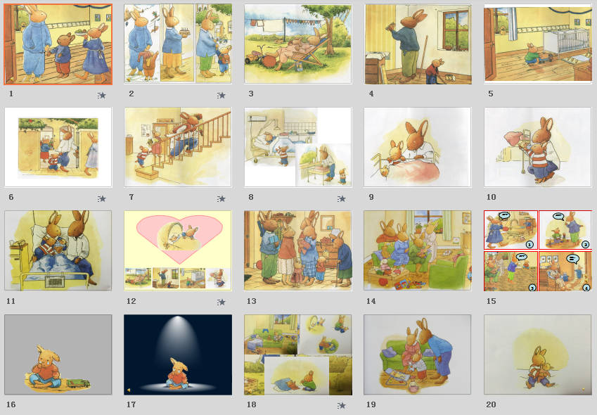 1、观察解读画面,感受汤姆在妹妹出生前后的情绪变化。