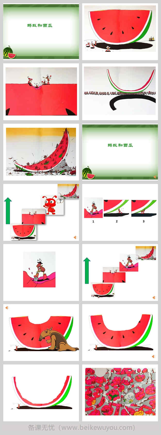 2.《蚂蚁和西瓜》的PFT,图片选择于绘本。