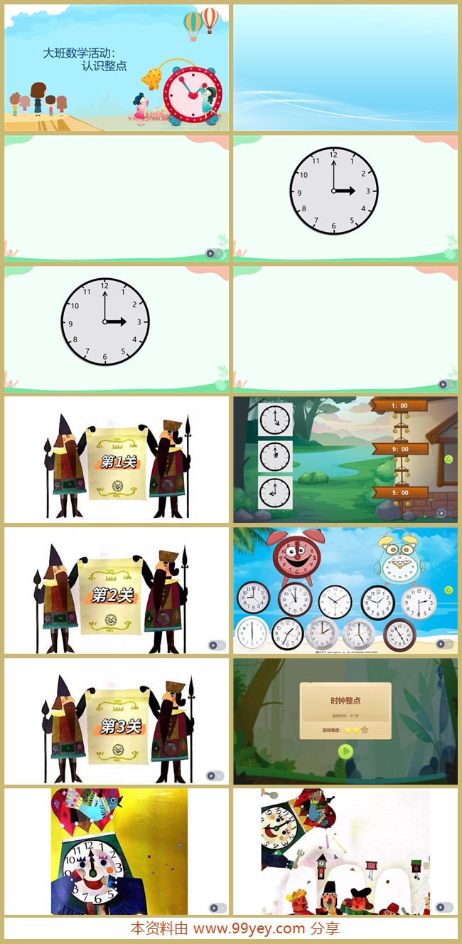 2. 通过单人挑战、双人合作等游戏形式,进一步巩固对整点的认识。