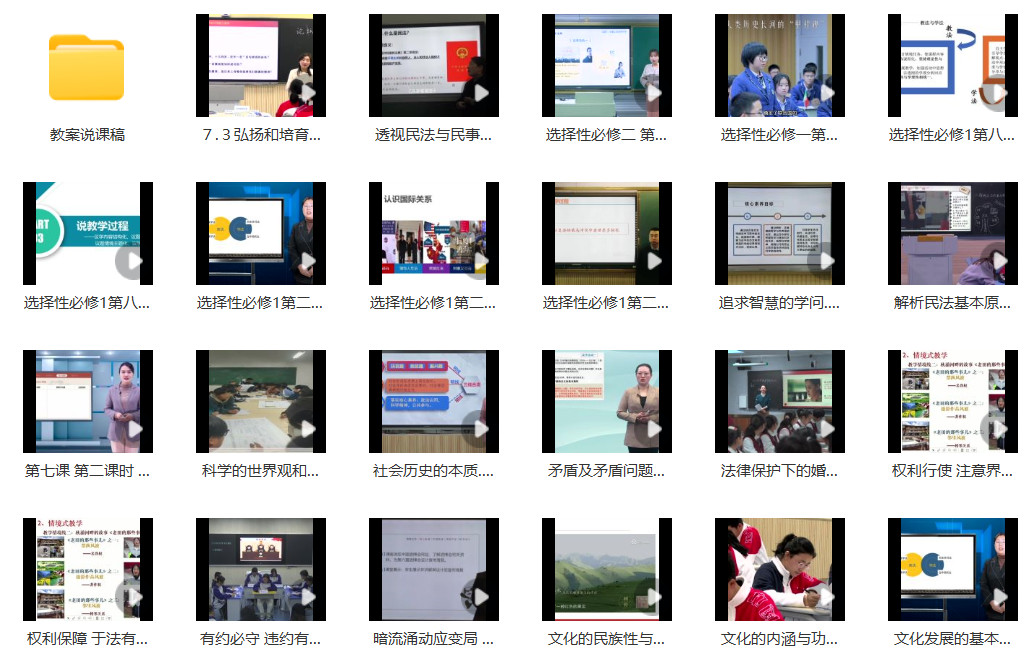 共91个文件,26.15GB ,有视频+教案说课稿,资料截图和目录如下,下载链接在最下面: