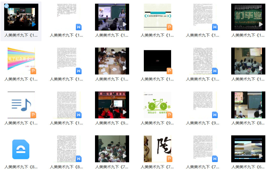 | | |—-人美版美术初中9年级下册教案PPT课件配套优质课视频 共计 41 个文件