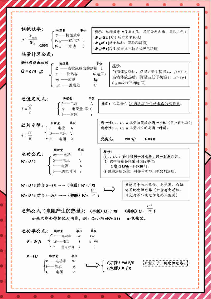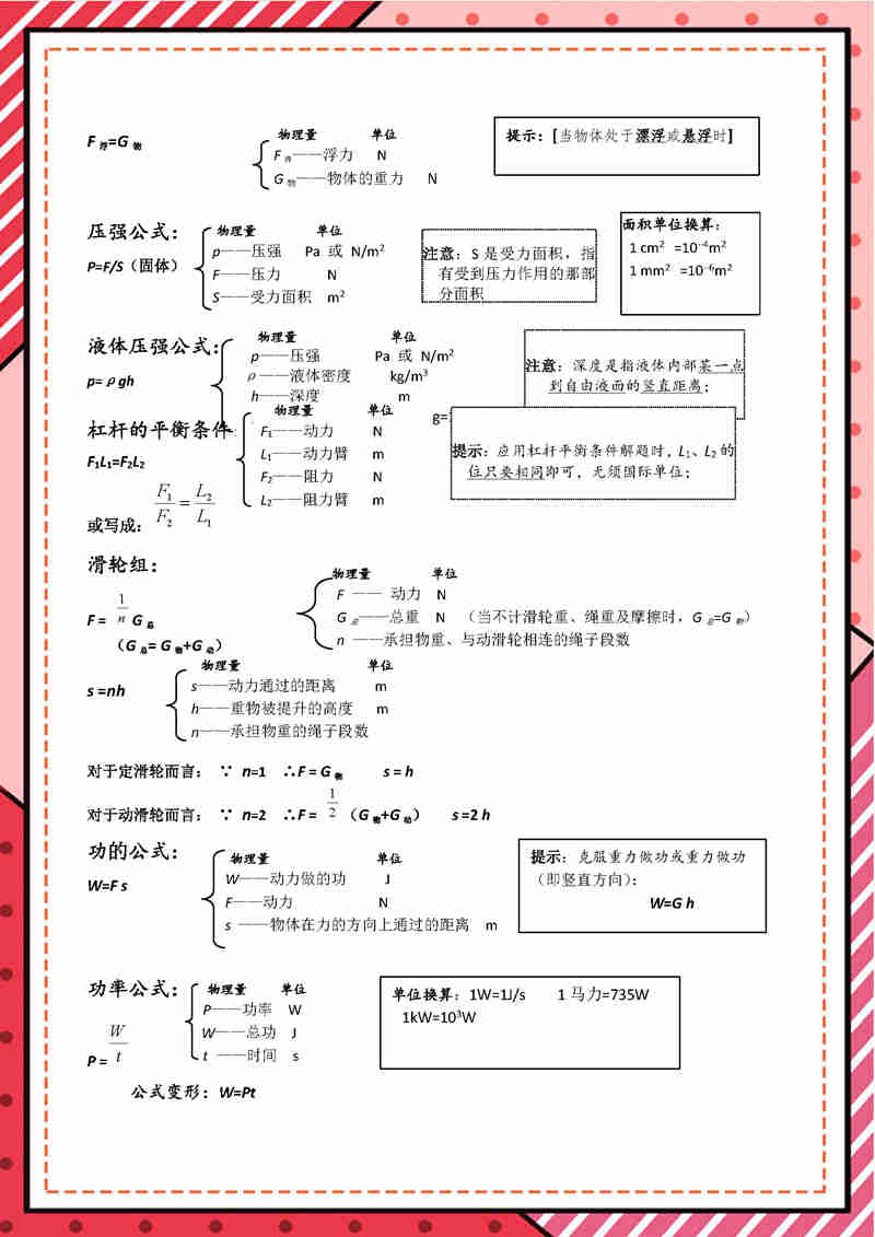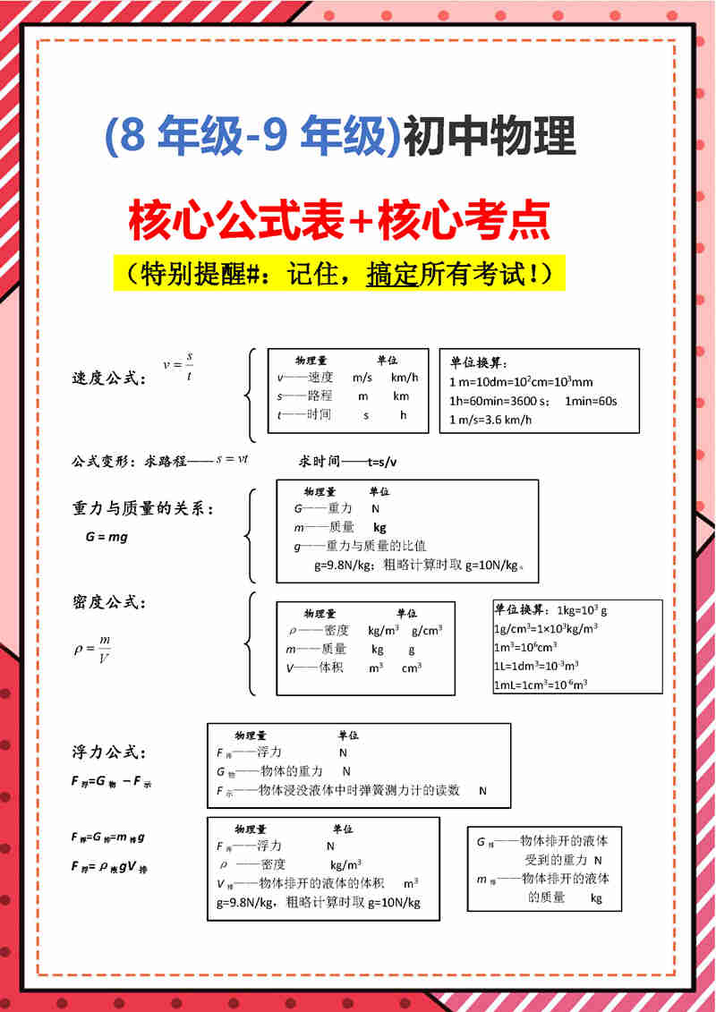 8年级-9年级物理 - 核心公式表+核心考点 8年级-9年级物理 - 核心公式表+核心考点 8年级-9年级物理 - 核心公式表+核心考点