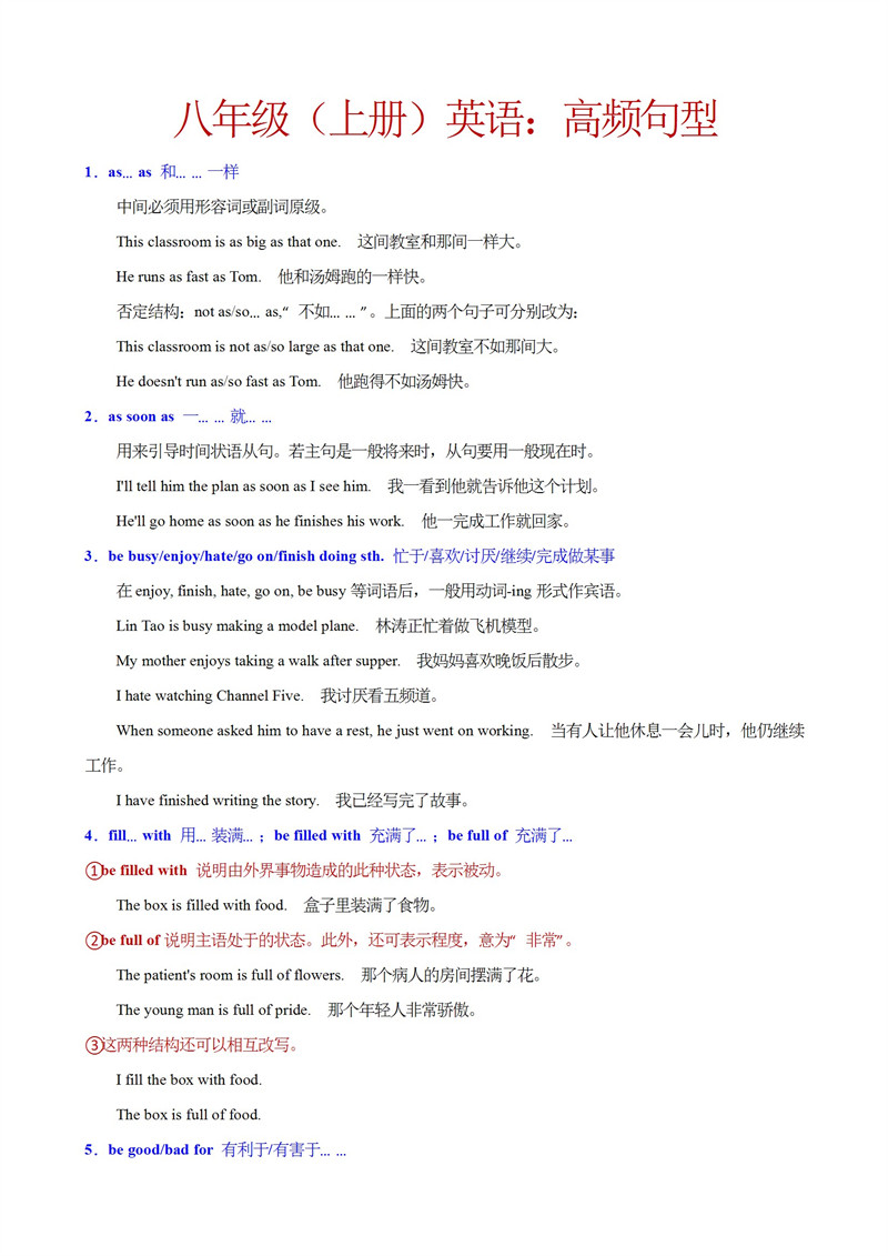 八上英语高频句型整理 八上英语高频句型整理