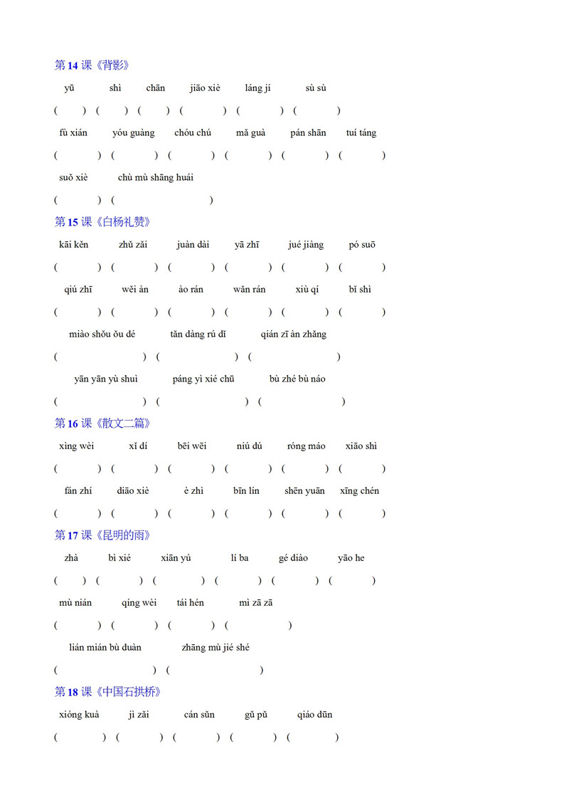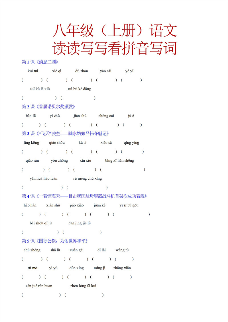 八上语文读读写写看拼音写词 八上语文读读写写看拼音写词 八上语文读读写写看拼音写词