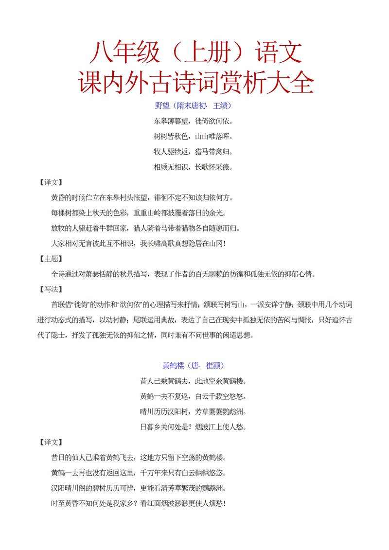 八上语文课内外古诗词赏析 八上语文课内外古诗词赏析八上语文课内外古诗词赏析