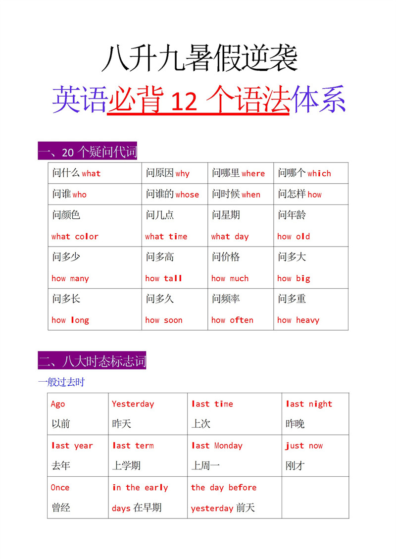 初中英语12个语法体系 初中英语12个语法体系 初中英语12个语法体系