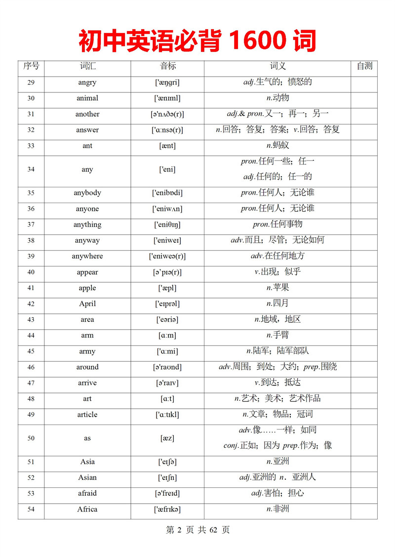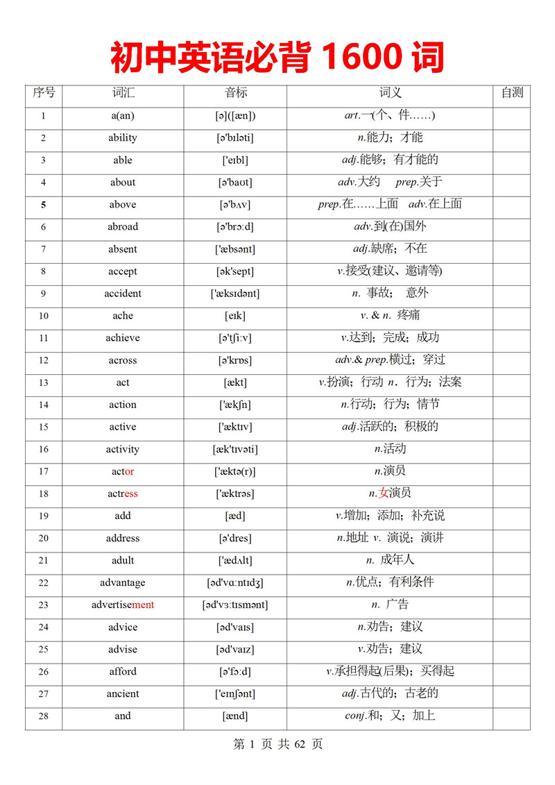 初中英语必背1600词 初中英语必背1600词 初中英语必背1600词