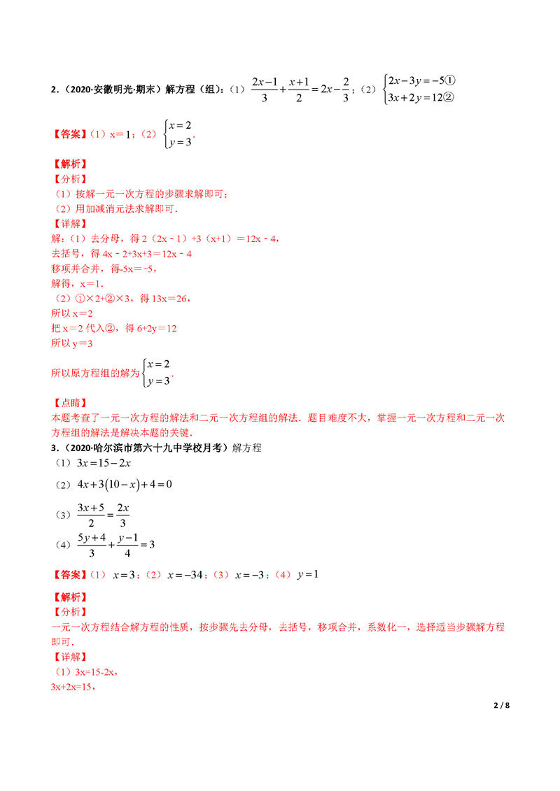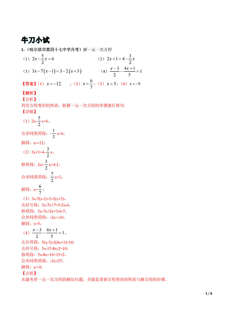 (计算能力答案)解一元一次方程综合(一) 解析版 (计算能力答案)解一元一次方程综合(一) 解析版