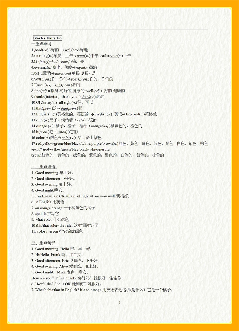 人教版七年级上英语Starter Units 1-3复习提纲