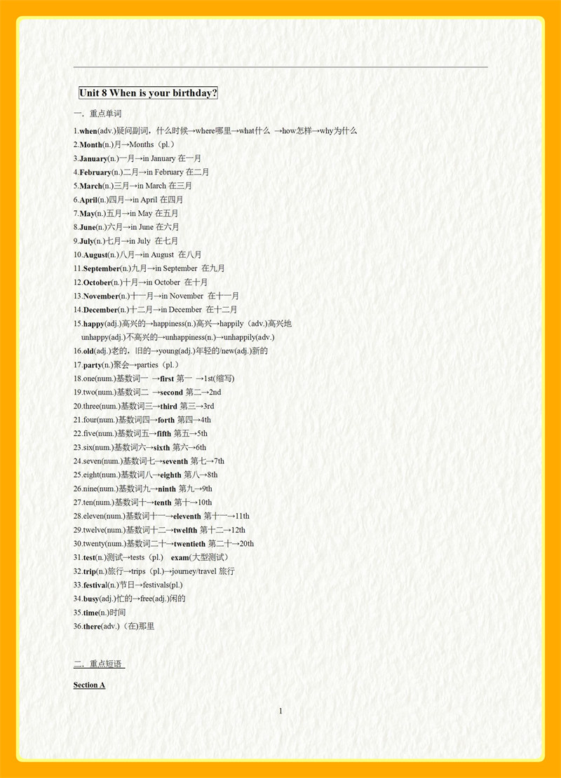 人教版七年级上英语Unit8 复习提纲