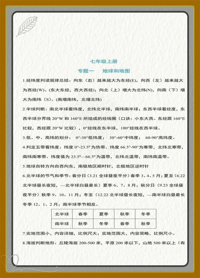 初中地理七上知识复习提纲+知识点记忆口诀!