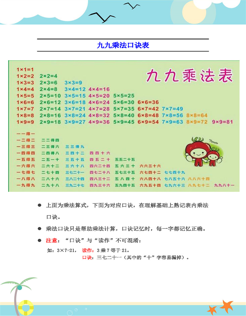 二年级上册乘法口诀表识记攻略 二年级上册乘法口诀表识记攻略
