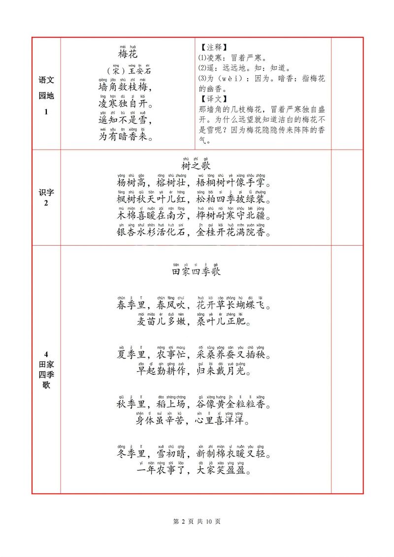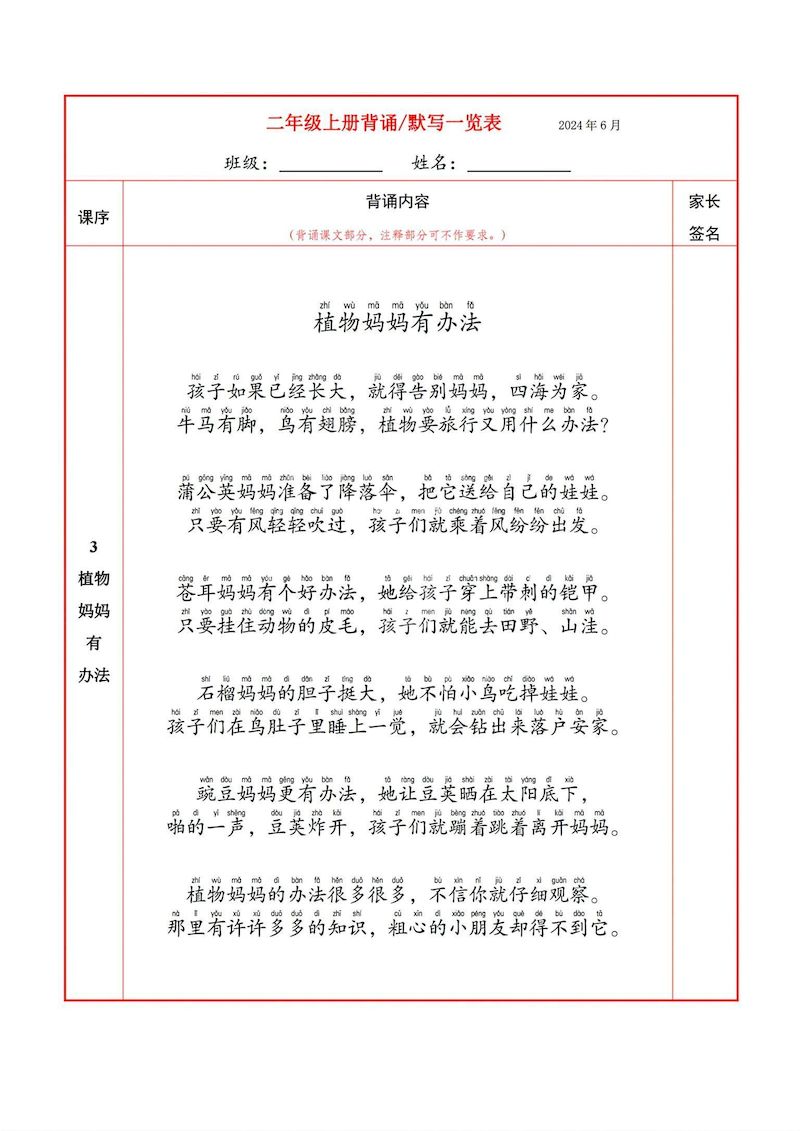 2年级语文上册必背内容+默写表 2年级语文上册必背内容+默写表