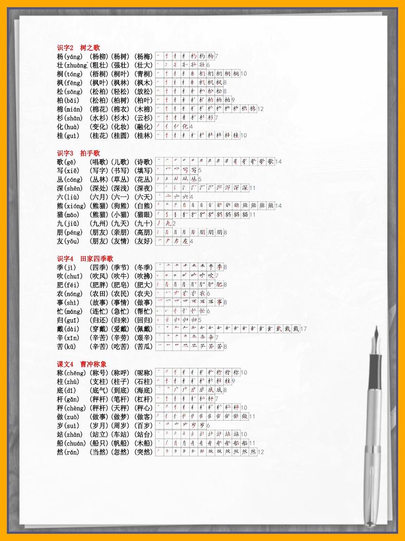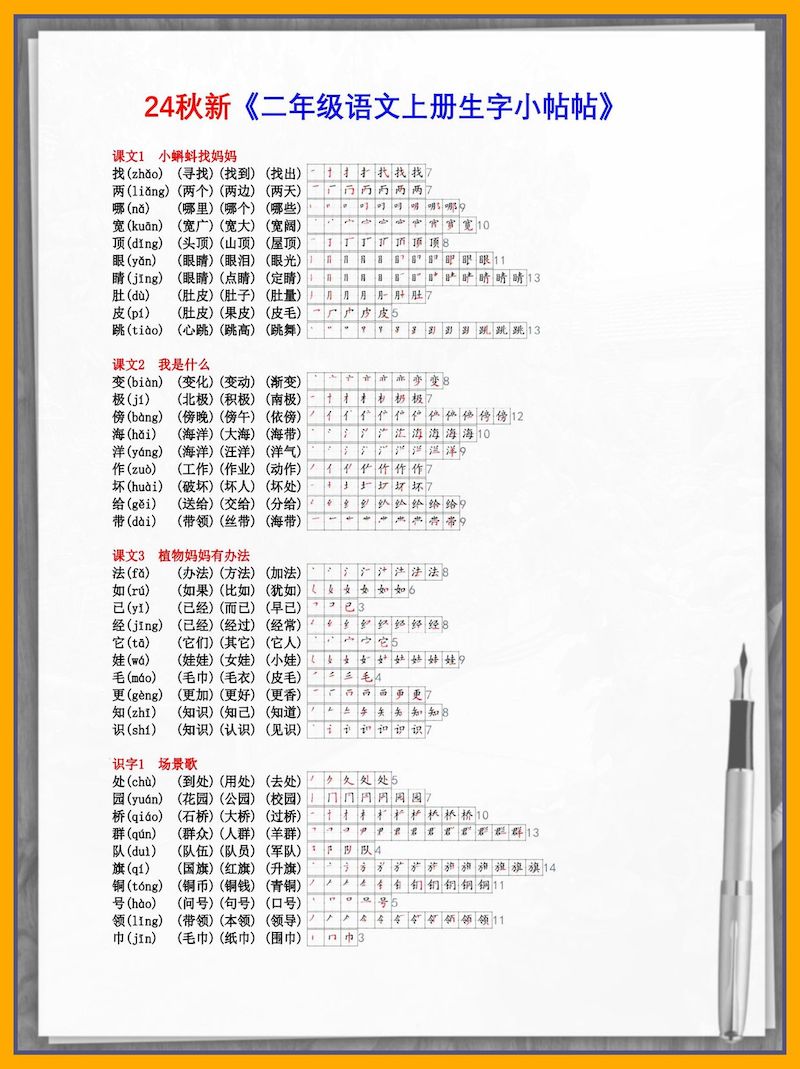二年级语文上册生字新版课课贴 二年级语文上册生字新版课课贴