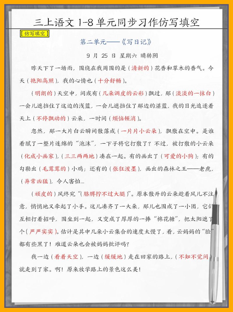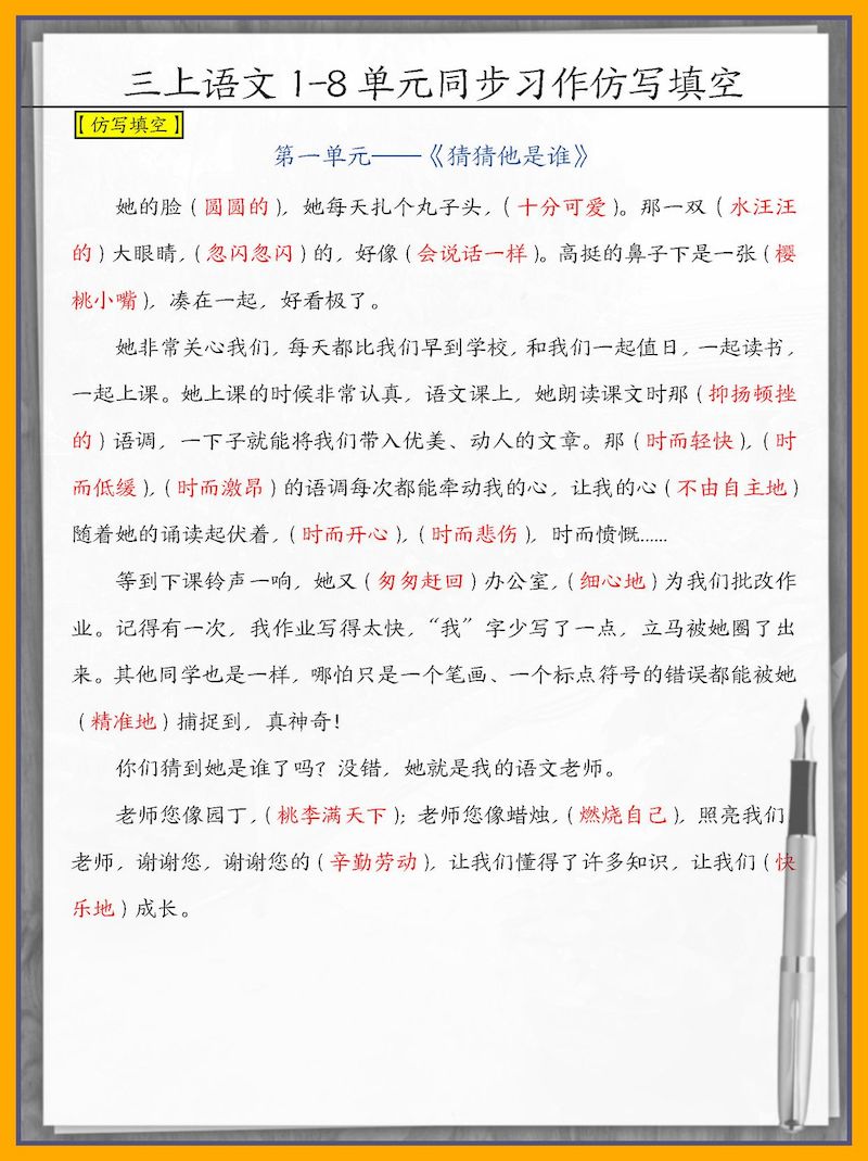 答案版三上语文1-8单元习作范文 答案版三上语文1-8单元习作范文
