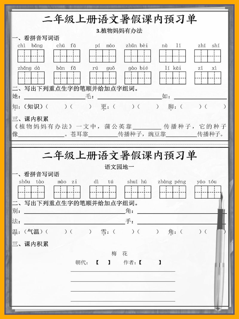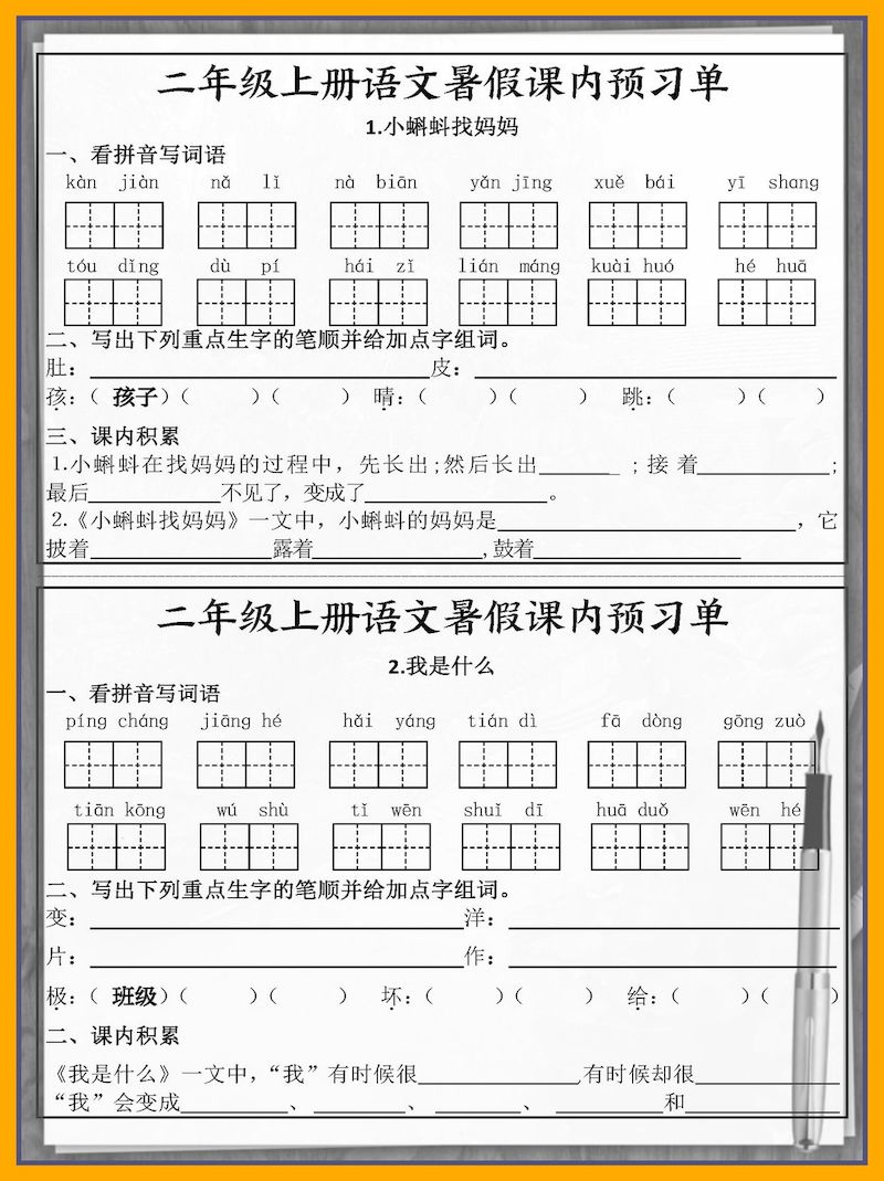 二年级上册语文暑假课内预习单 二年级上册语文暑假课内预习单