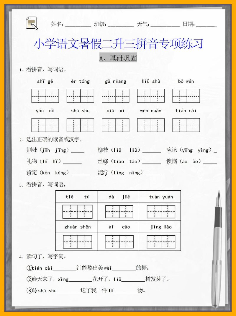 【二升三语文暑假】拼音专项练习 【二升三语文暑假】拼音专项练习