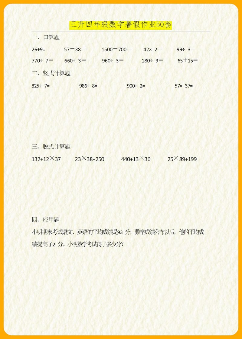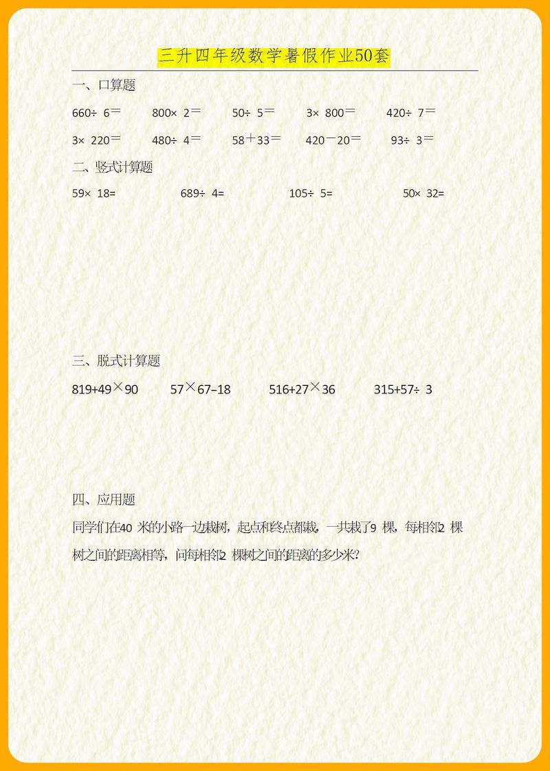 三升四数学暑假作业全50套 三升四数学暑假作业全50套