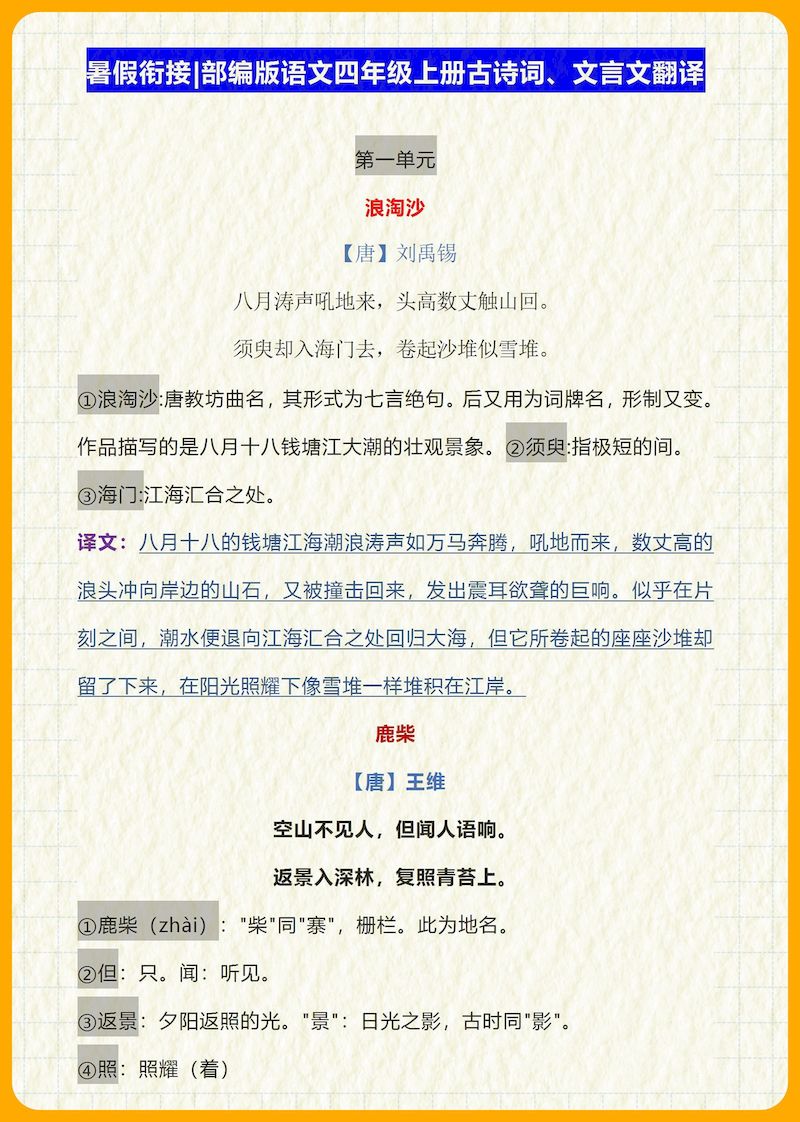 【三升四语文暑假】古诗词、文言文翻译 趁暑假打印出来,提前预习! 【三升四语文暑假】古诗词、文言文翻译 趁暑假打印出来,提前预习!