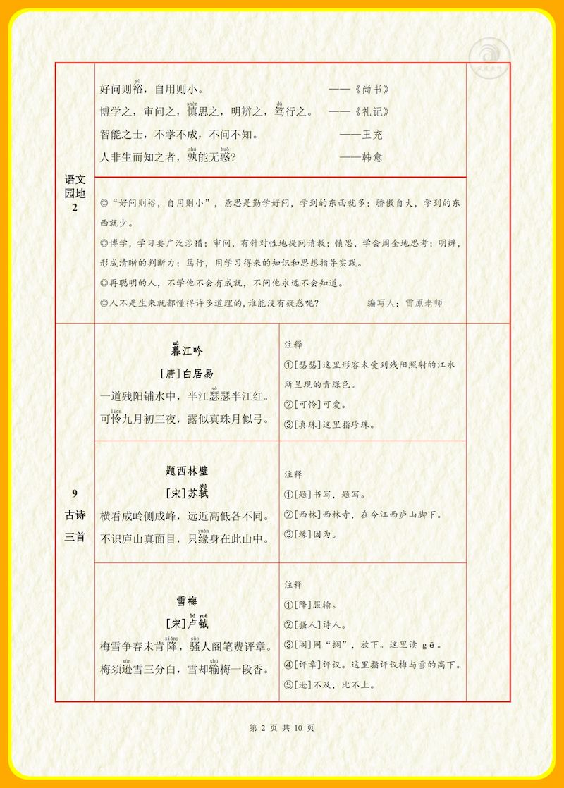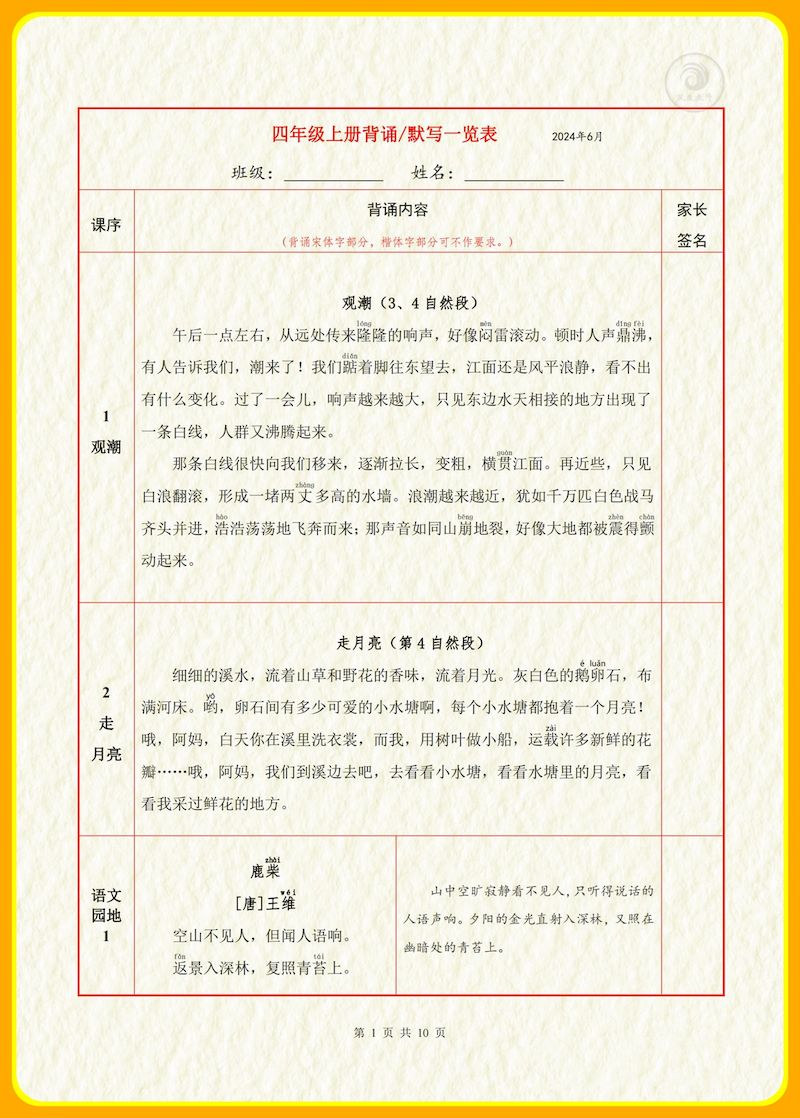 【背诵默写一览表】四上语文 【背诵默写一览表】四上语文