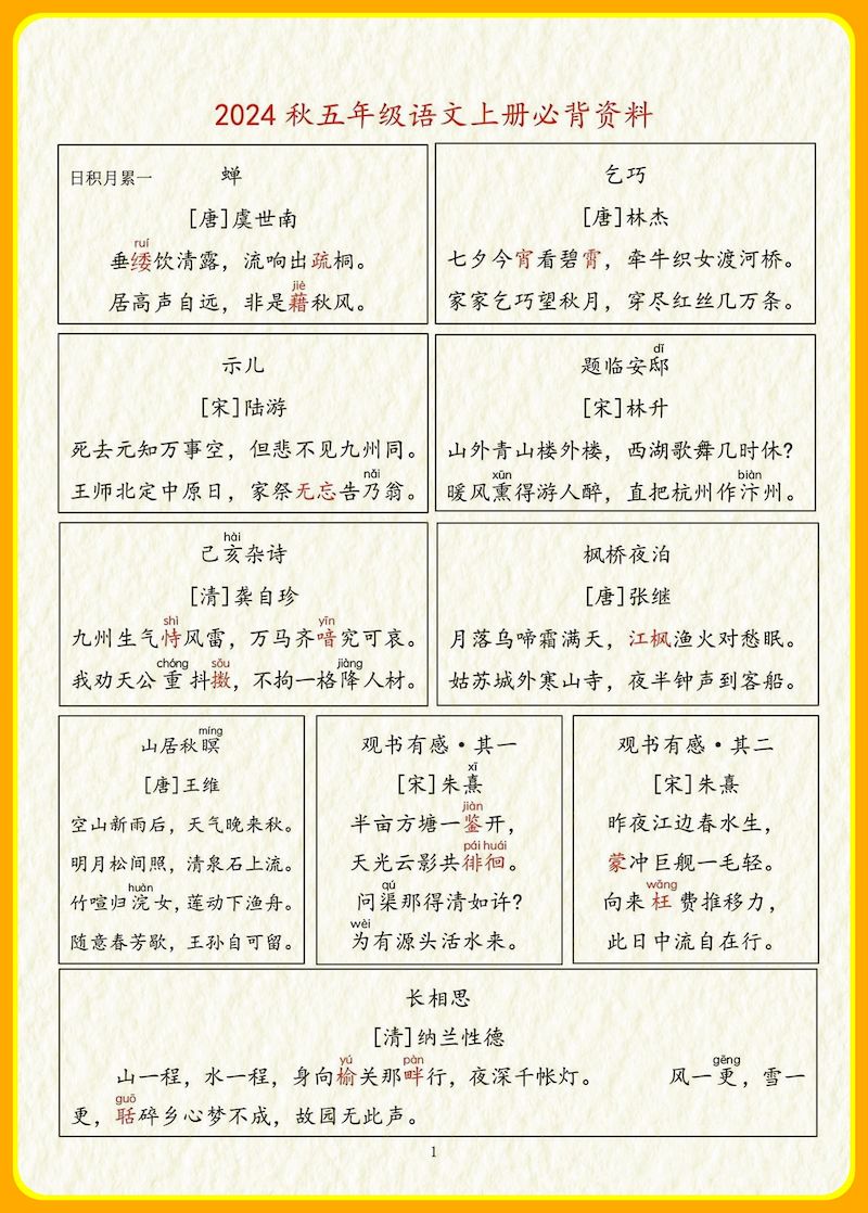 【暑假必背资料 】五上语文【暑假必背资料 】五上语文
