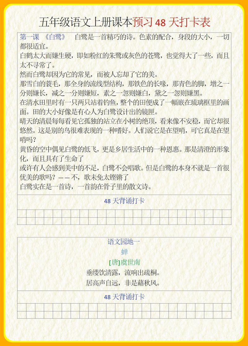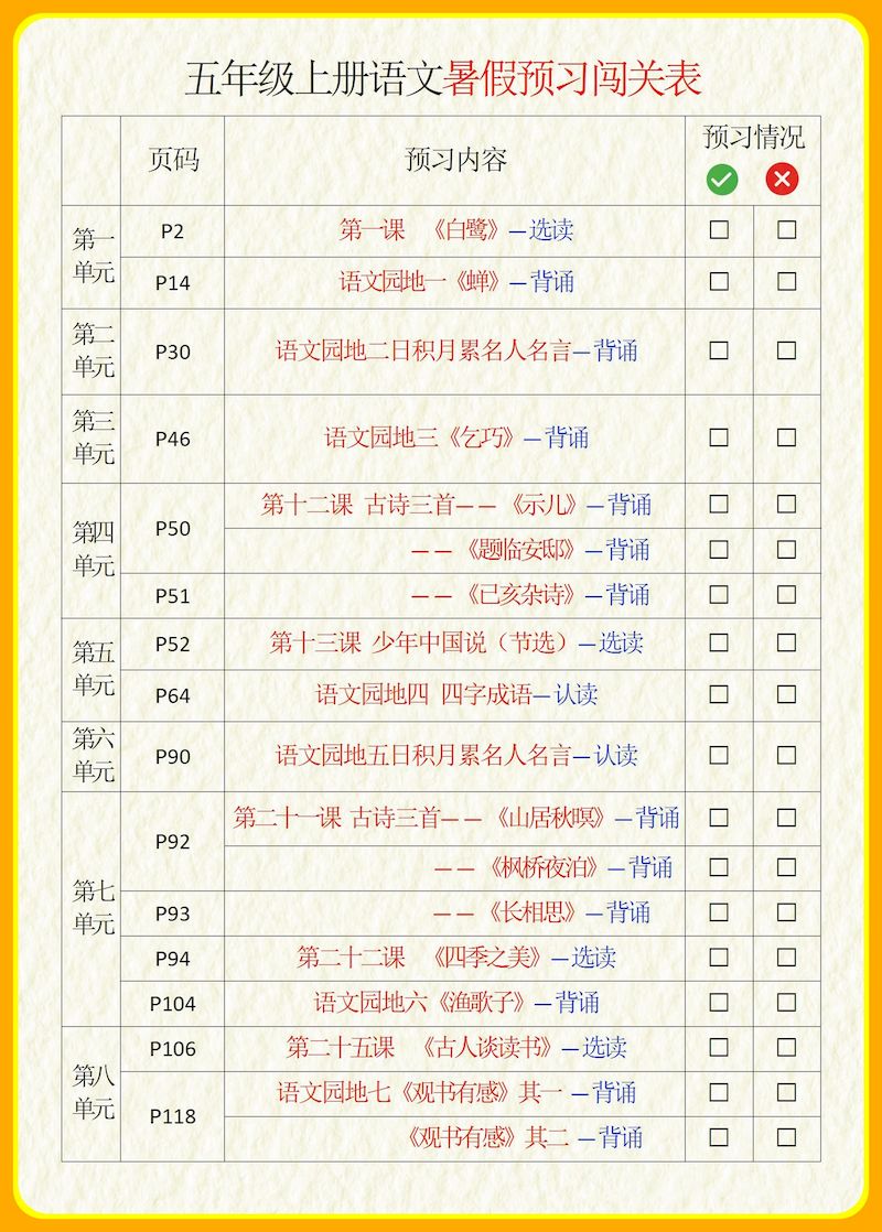 【暑假预习闯关表】五上语文 【暑假预习闯关表】五上语文