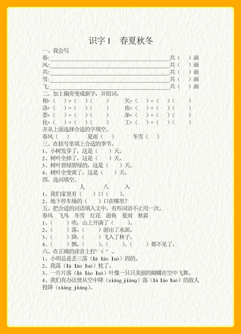 【每课一练】一上语文第一单元【每课一练】一上语文第一单元