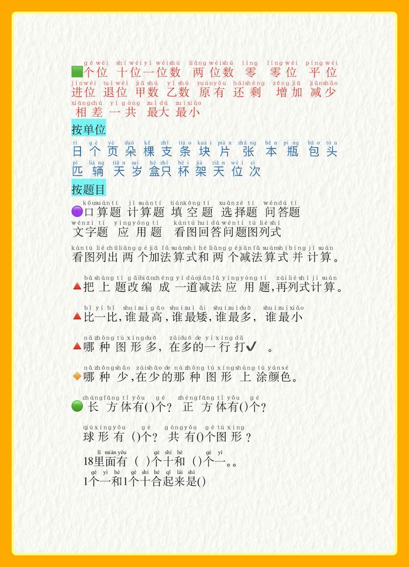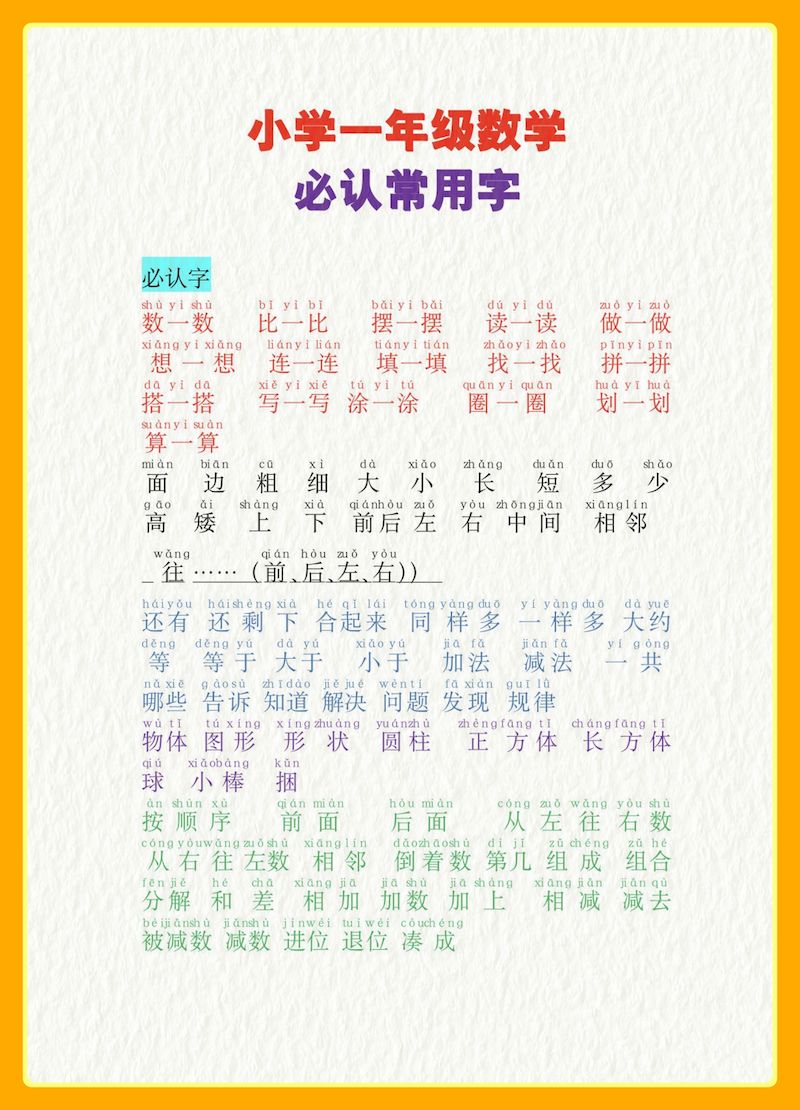 一年级数学必认常用字一年级数学必认常用字
