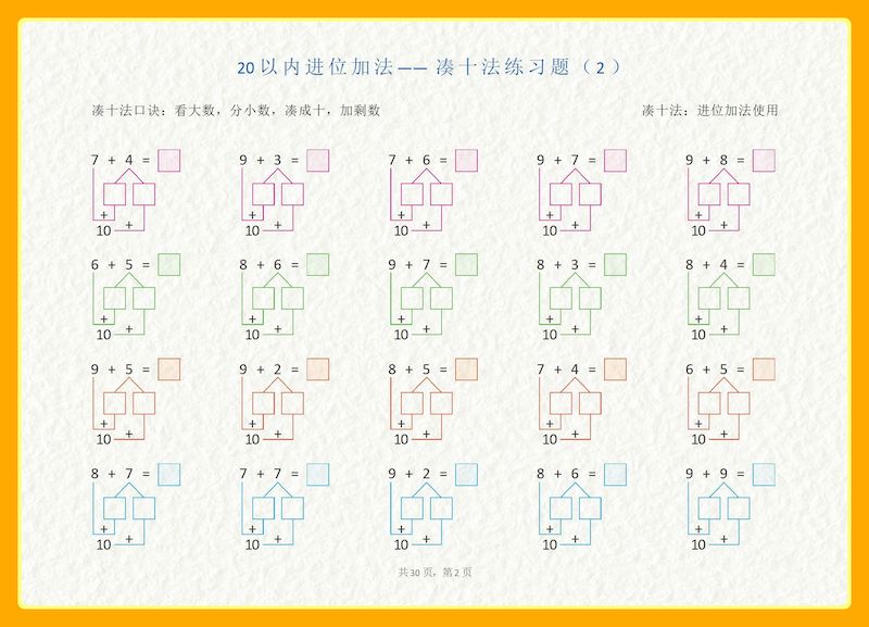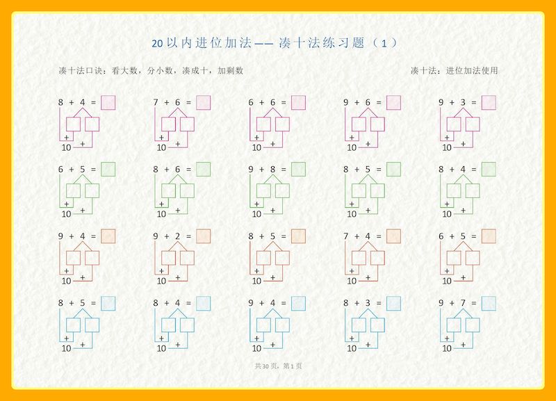 20以内加减法之凑十法、破十法、平十法图解练习题 20以内加减法之凑十法、破十法、平十法图解练习题