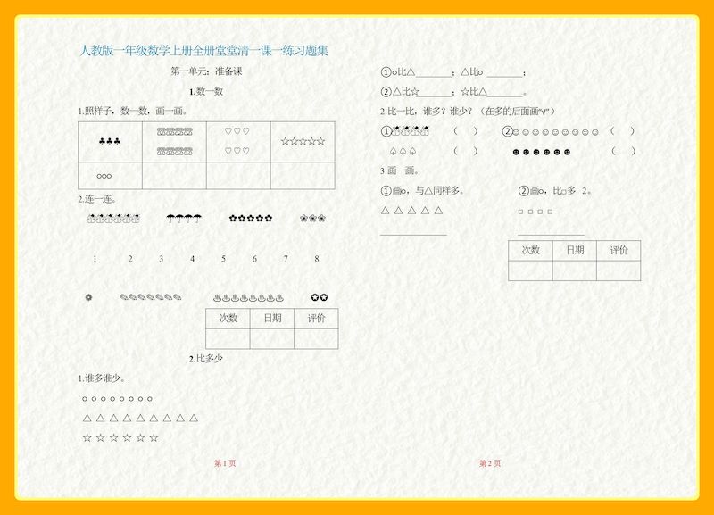 一上数学一课一练同步练习 一上数学一课一练同步练习