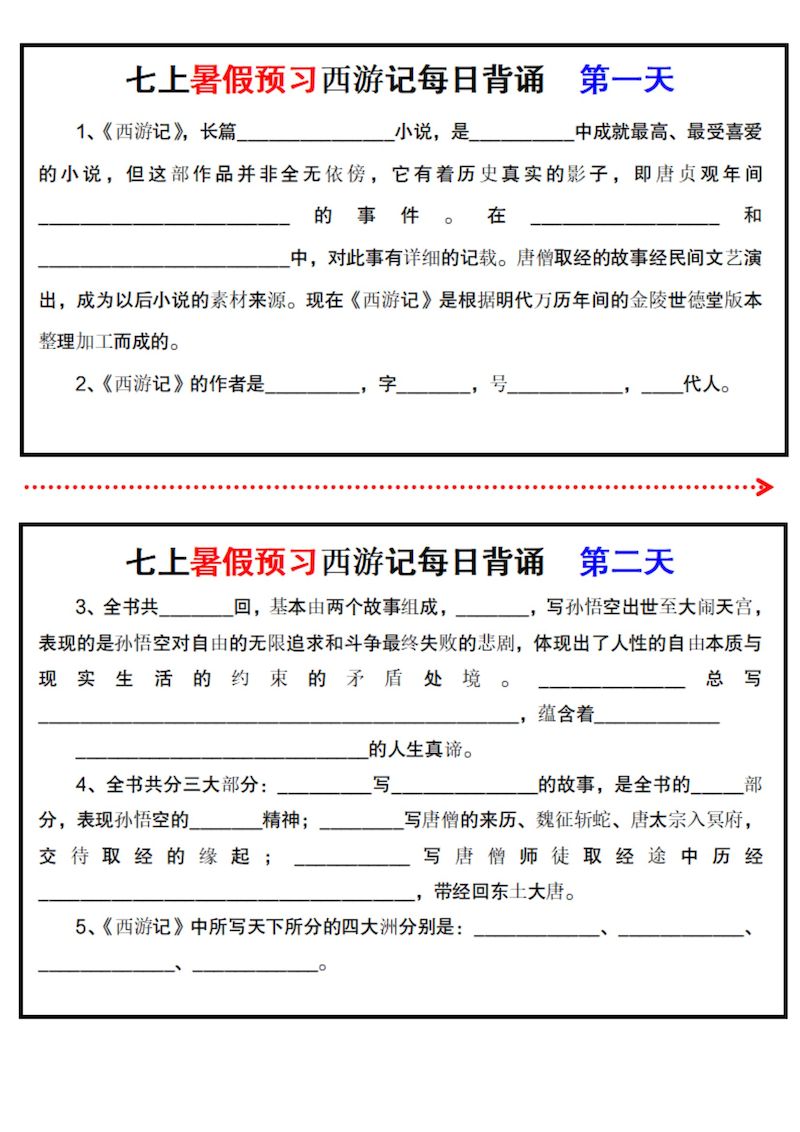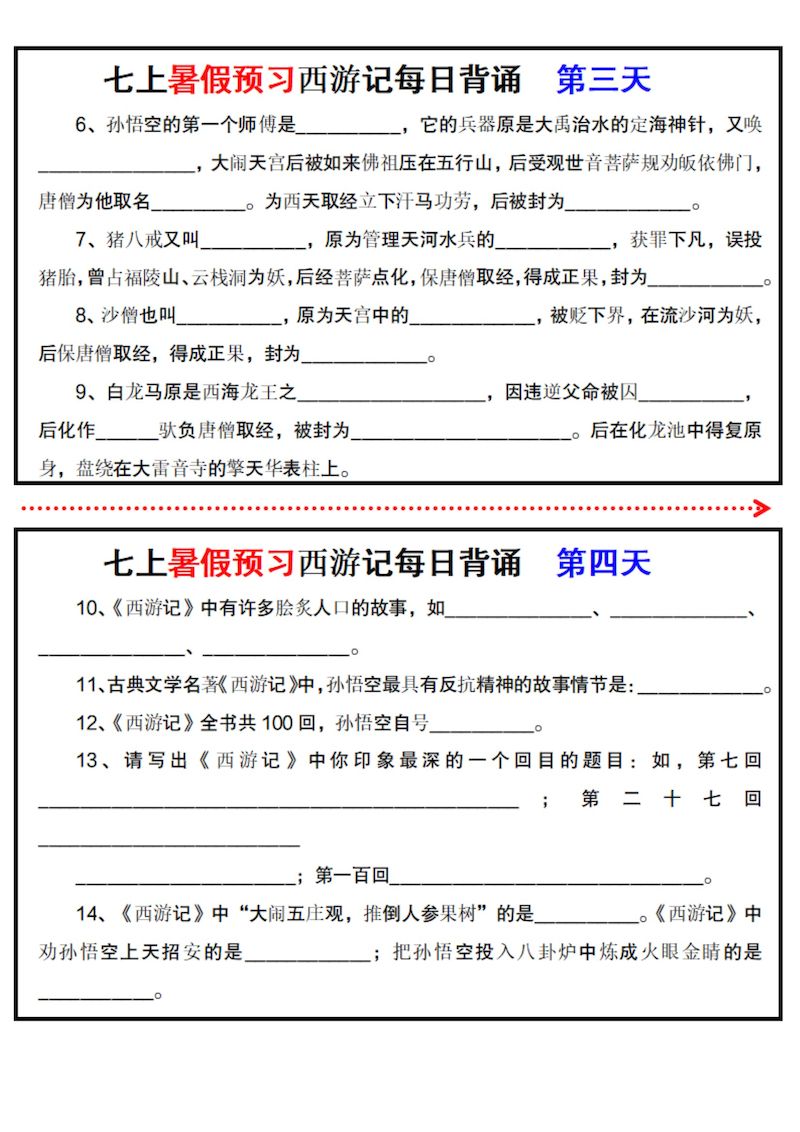 七上《西游记》每日一练 七上《西游记》每日一练