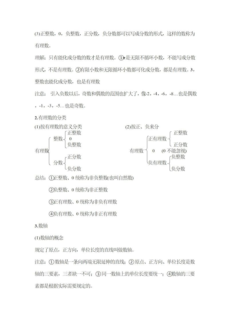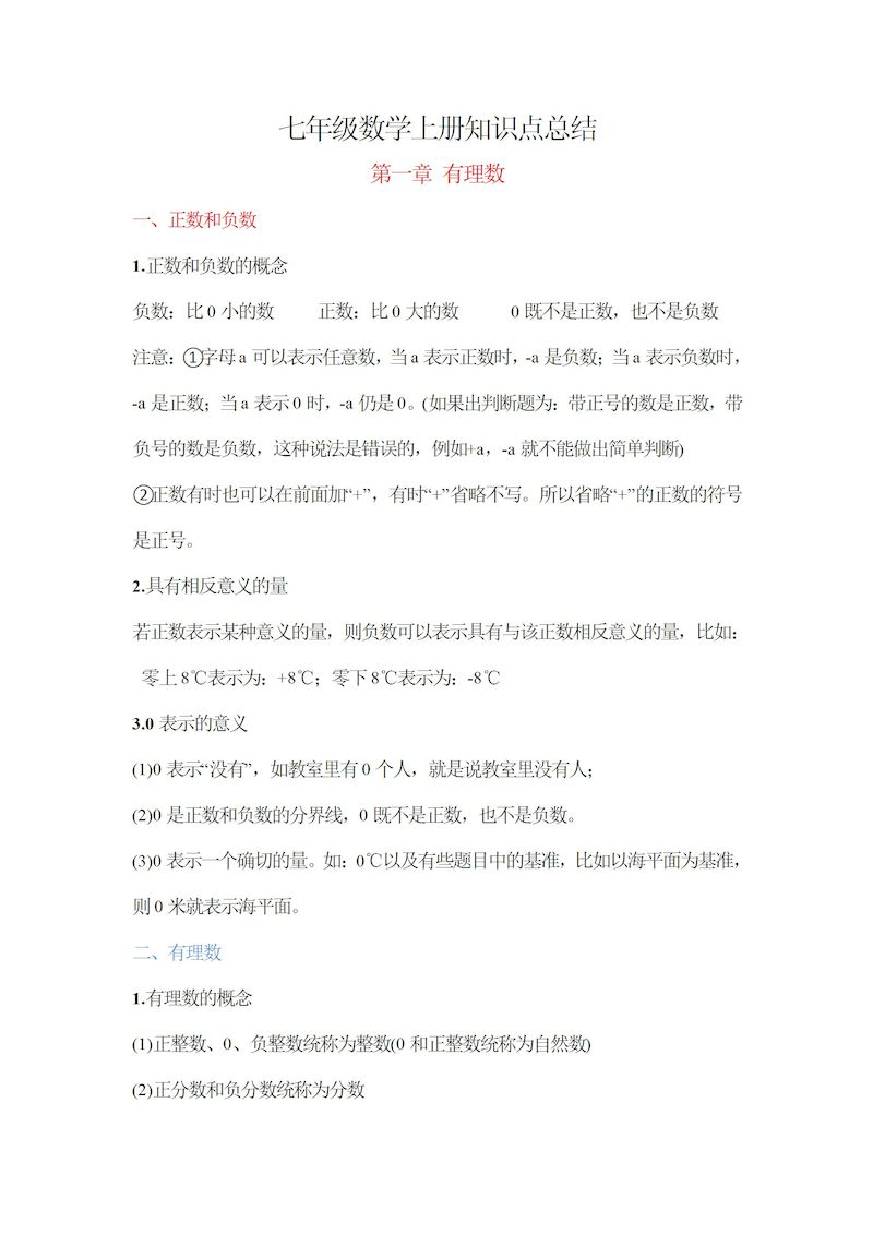 人教版七年级上册数学知识点总结 人教版七年级上册数学知识点总结