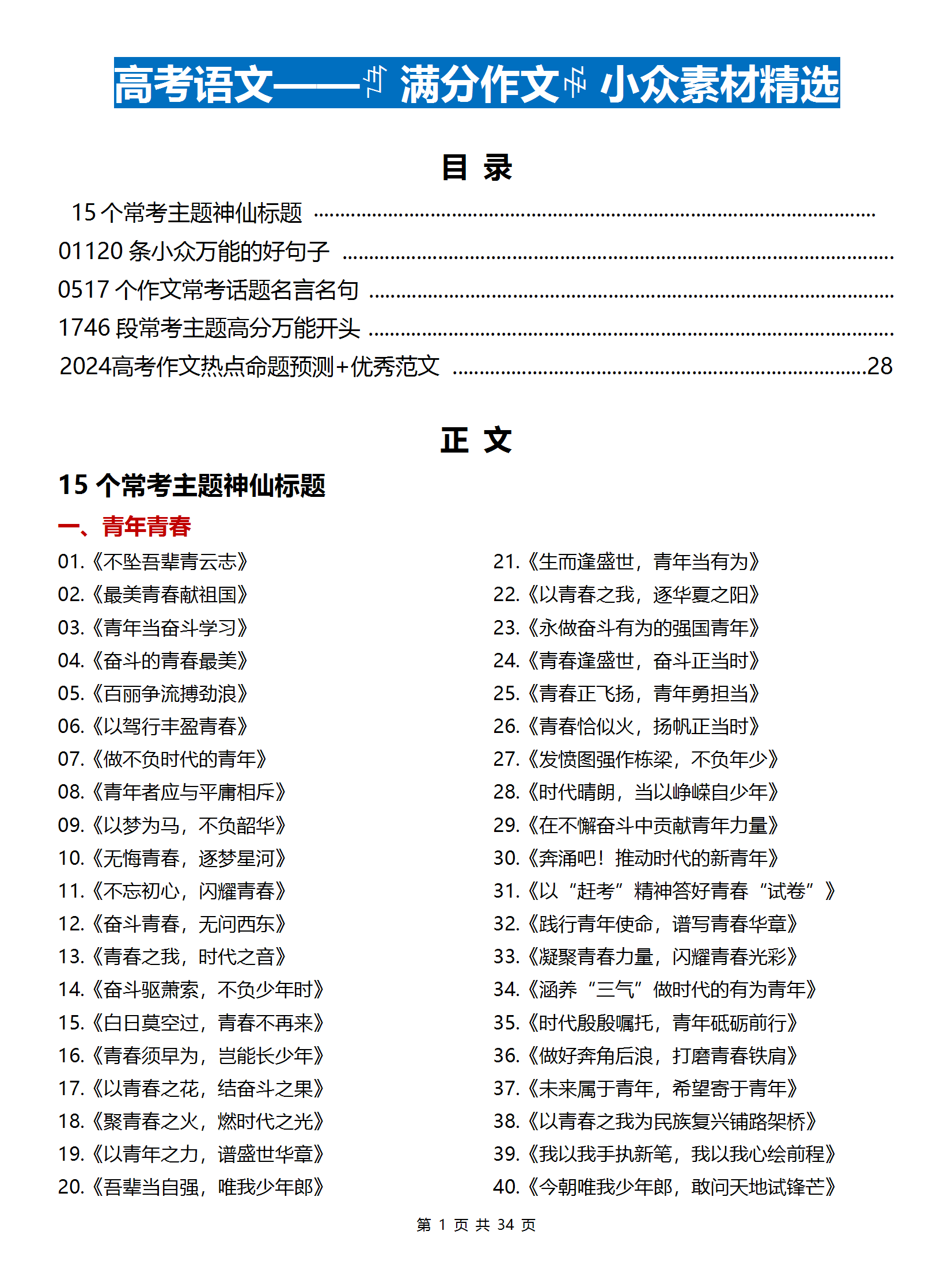 高中语文满分作文精选小众素材 高中语文满分作文精选小众素材