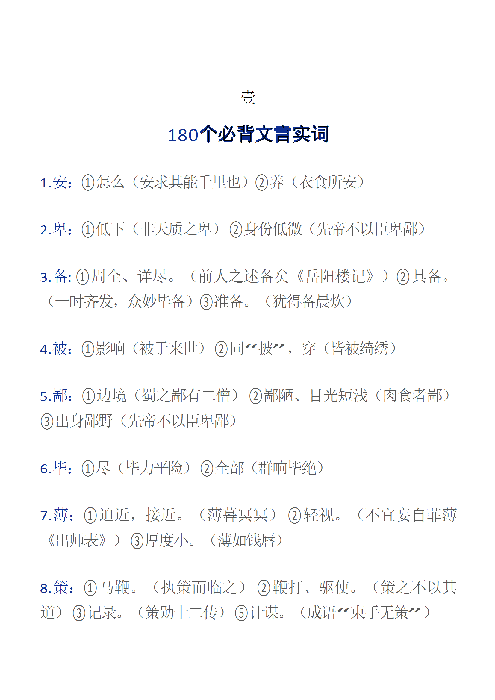 高中语文180个必背文言文实词 高中语文180个必背文言文实词 高中语文180个必背文言文实词