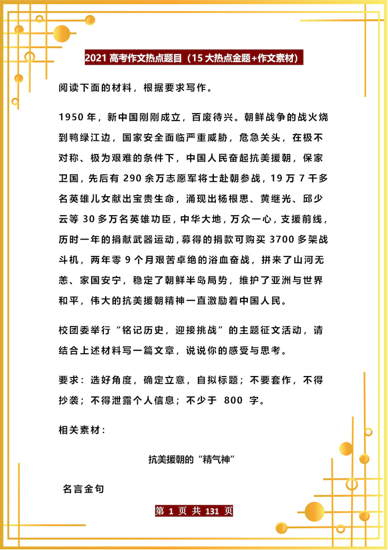 高中语文021高考作文热点题目(15大热点金题+作文素材) 高中语文021高考作文热点题目(15大热点金题+作文素材)