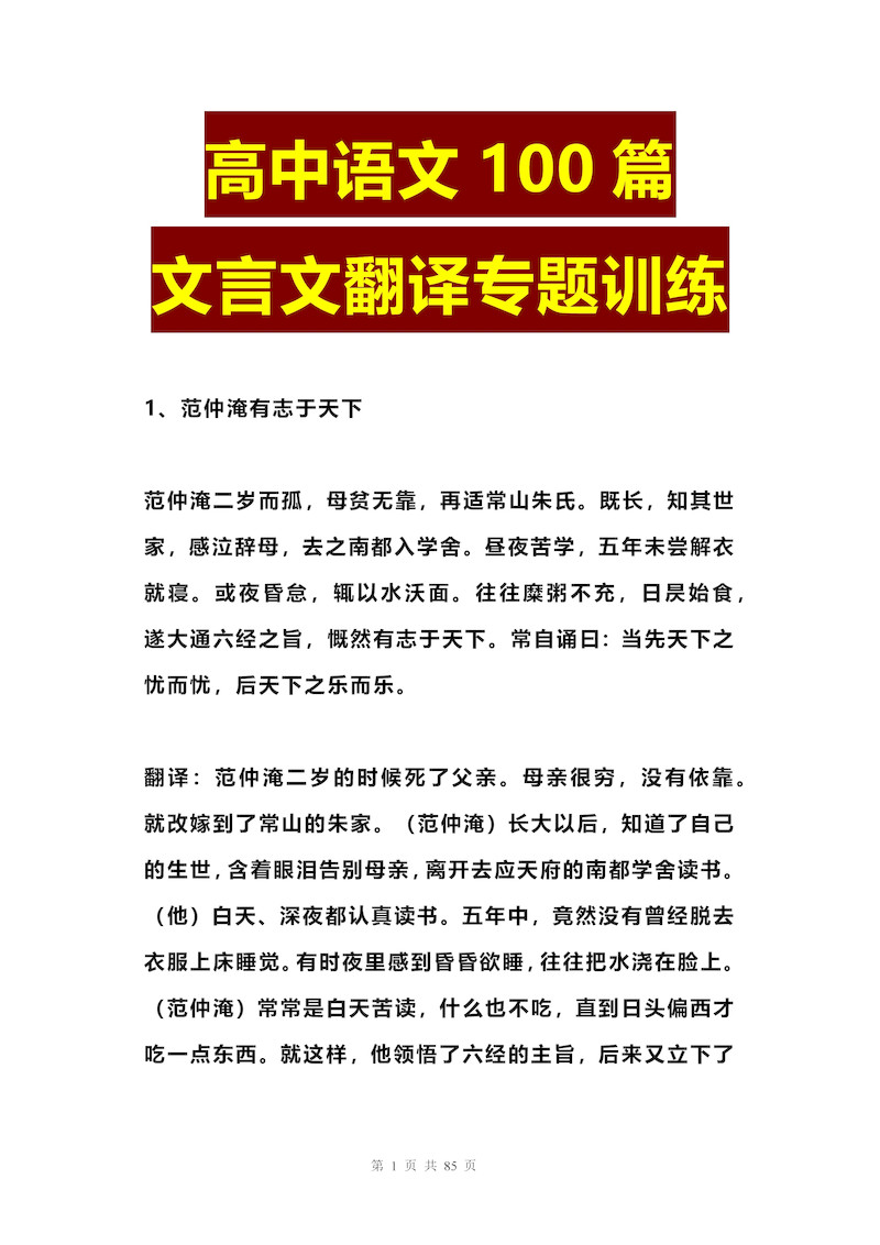 高中语文100篇文言文翻译专题训练! 高中语文100篇文言文翻译专题训练!
