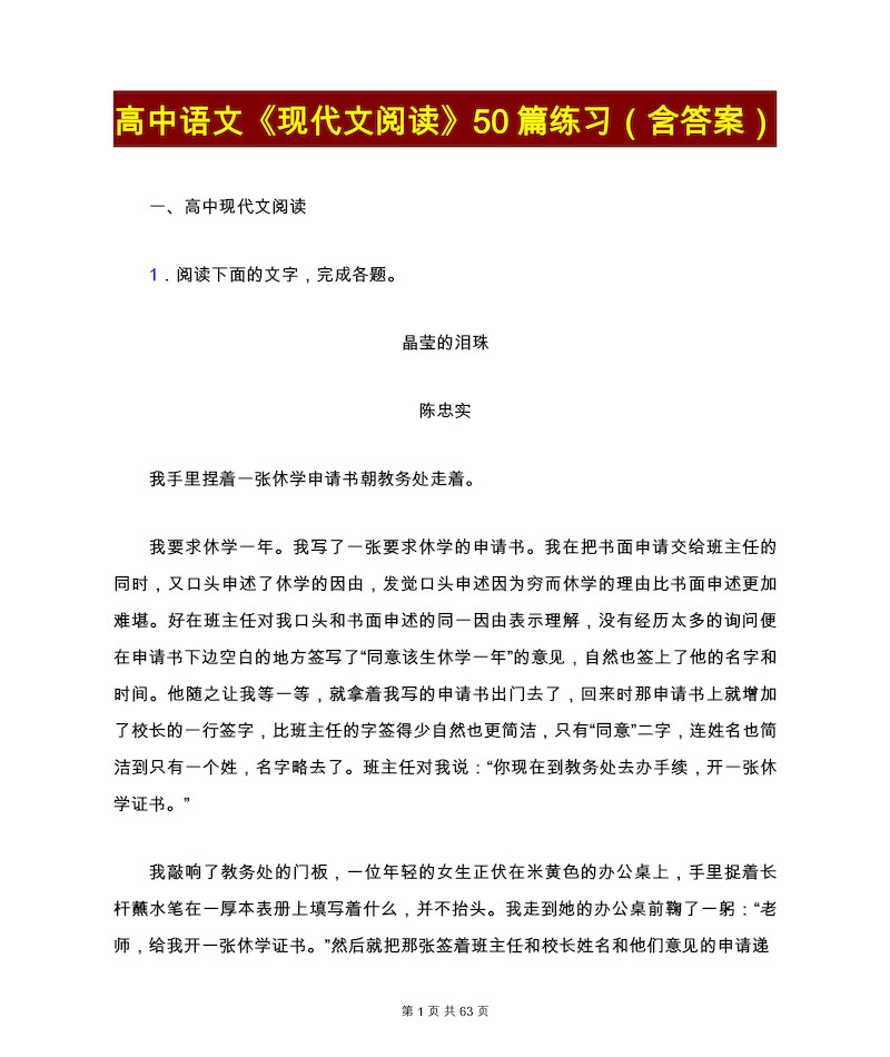 高中语文《现代文阅读》50篇练习(含答案) 高中语文《现代文阅读》50篇练习(含答案)