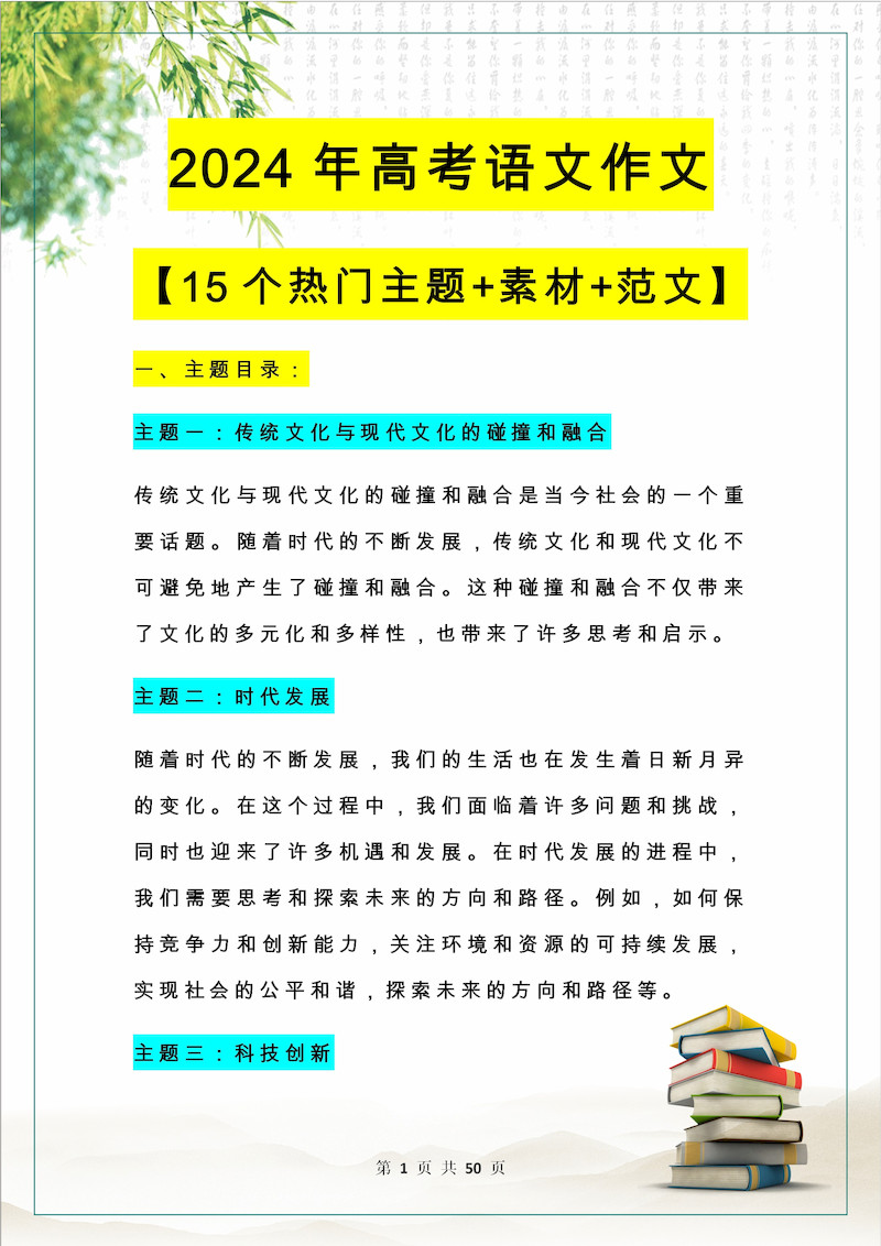 高中语文作文【15个热门主题+素材+范文】 高中语文作文【15个热门主题+素材+范文】