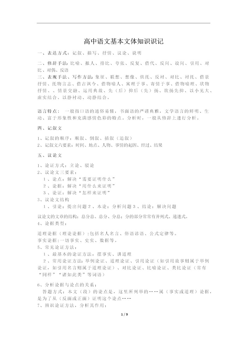 高中语文基本文体知识识记 高中语文基本文体知识识记