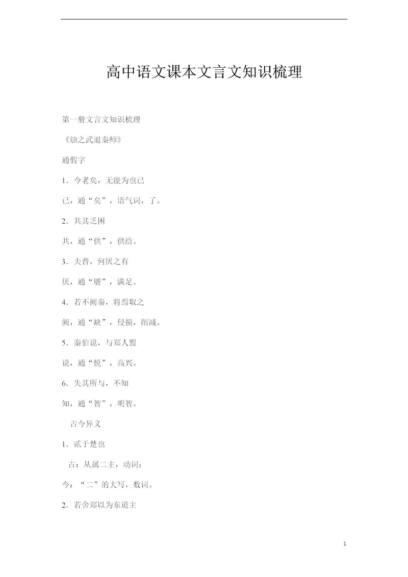 高中语文文言文知识点大全 高中语文文言文知识点大全 高中语文文言文知识点大全高中语文文言文知识点大全