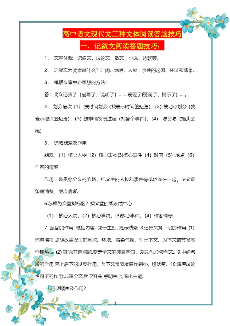 高中语文现代文三种文体阅读答题技巧 高中语文现代文三种文体阅读答题技巧