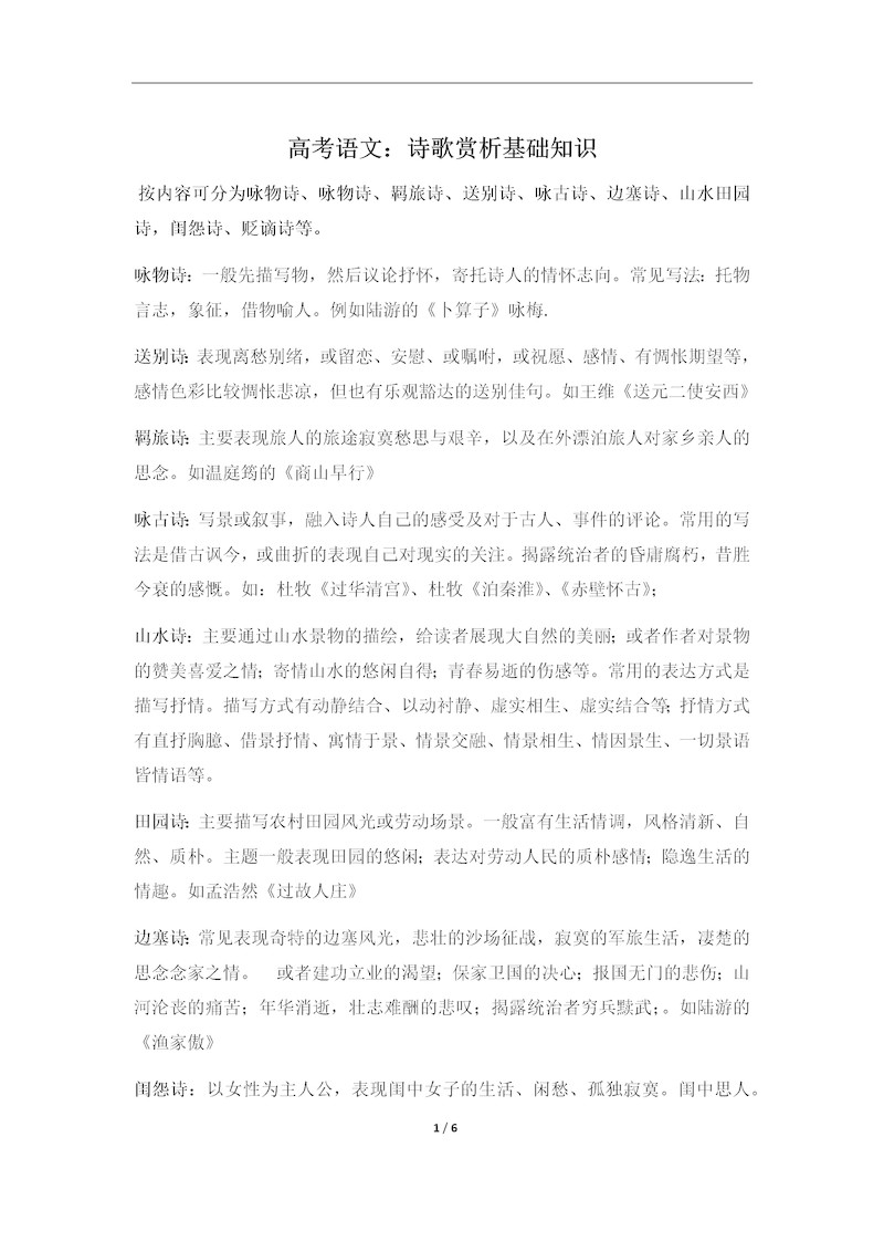 高中语文诗歌赏析基础知识