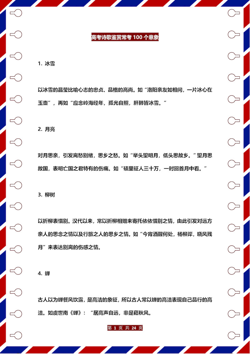 高中语文诗歌鉴赏常考100个意象 高中语文诗歌鉴赏常考100个意象