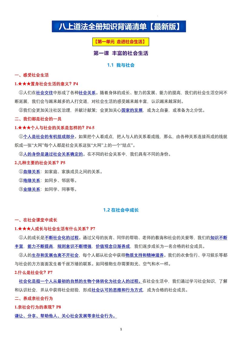 【八上道法】全册知识背诵清单(最新版) 【八上道法】全册知识背诵清单(最新版)