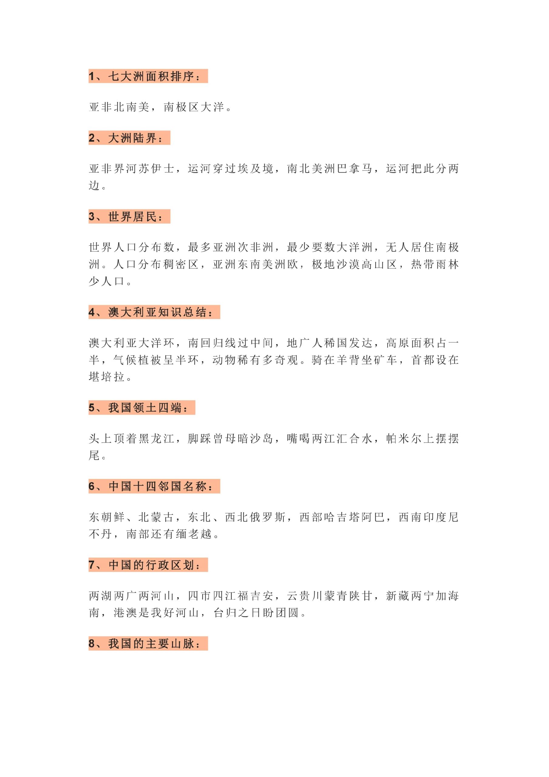 【初中地理】3年考点顺口溜,好学又好记!