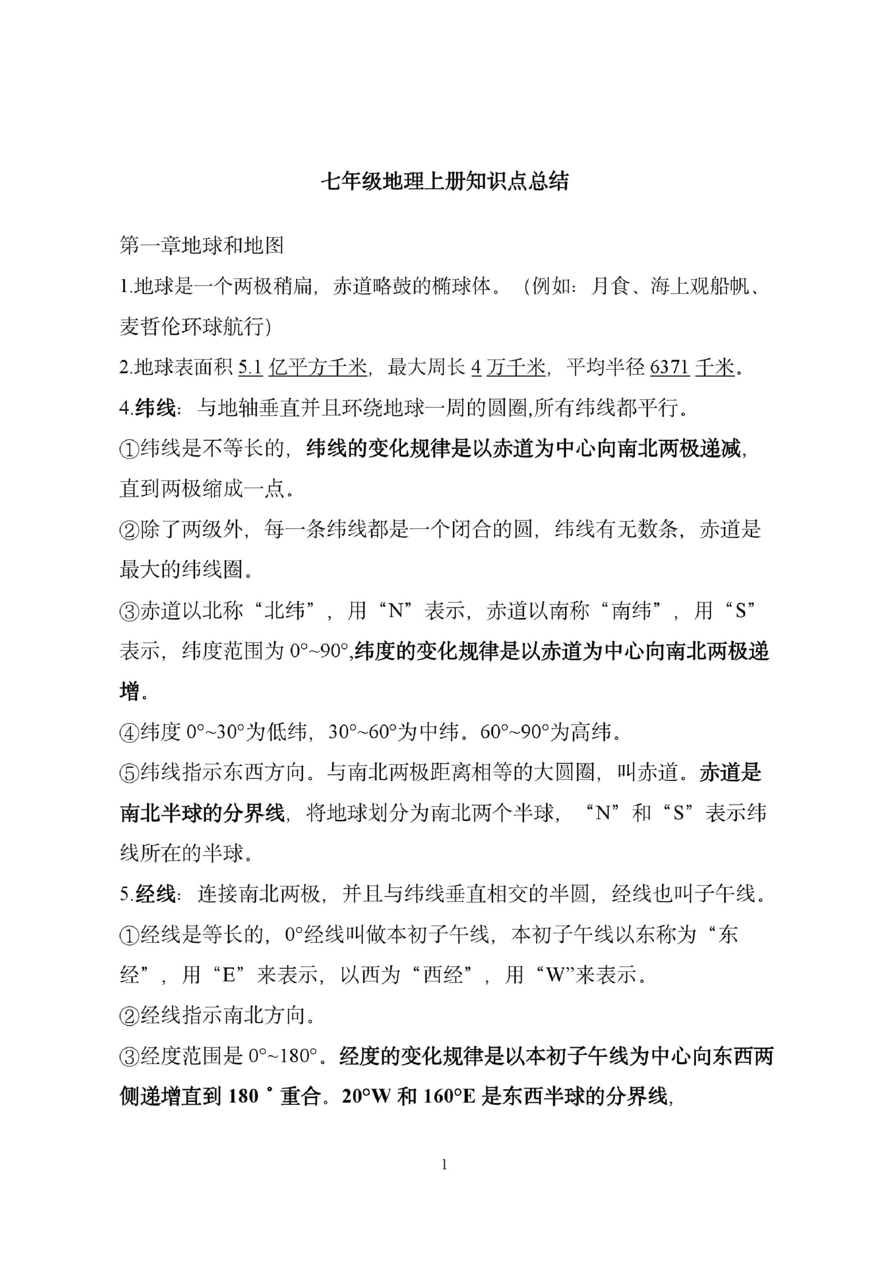人教版七年级地理上册知识点总结 人教版七年级地理上册知识点总结