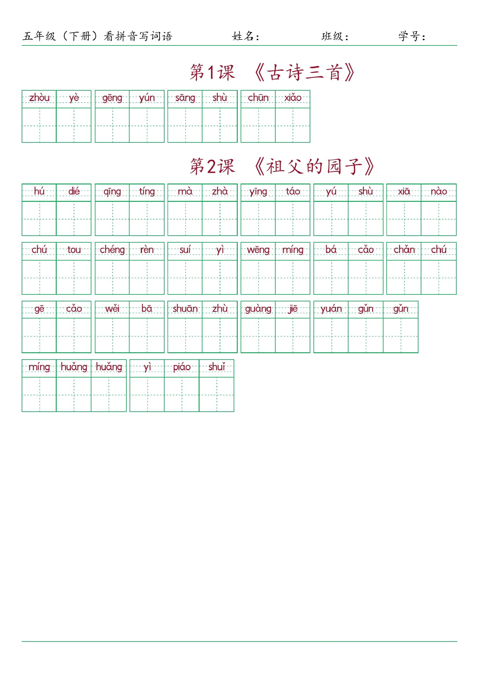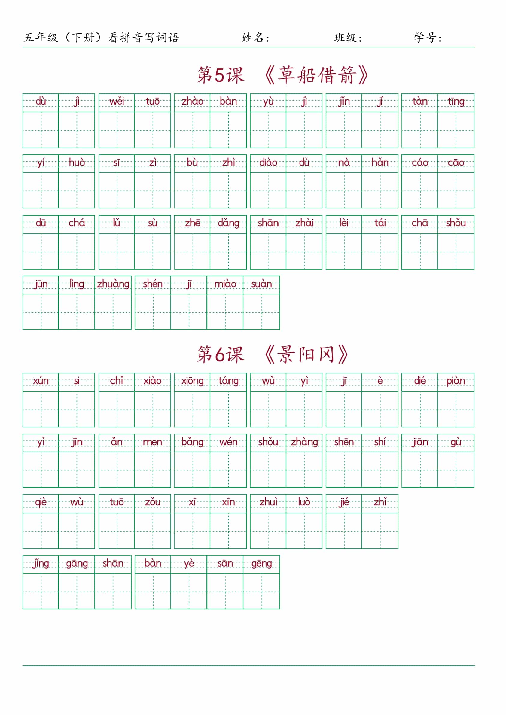 五下语文按课看拼音写词语 五下语文按课看拼音写词语