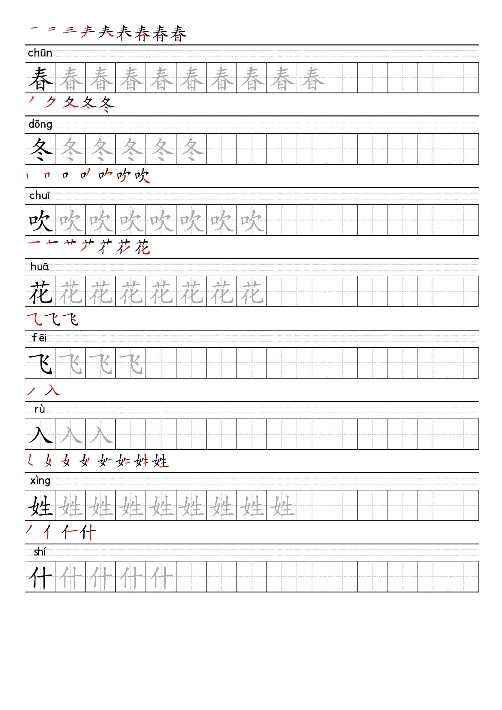 【2025春-生字表字帖】一下语文 【2025春-生字表字帖】一下语文