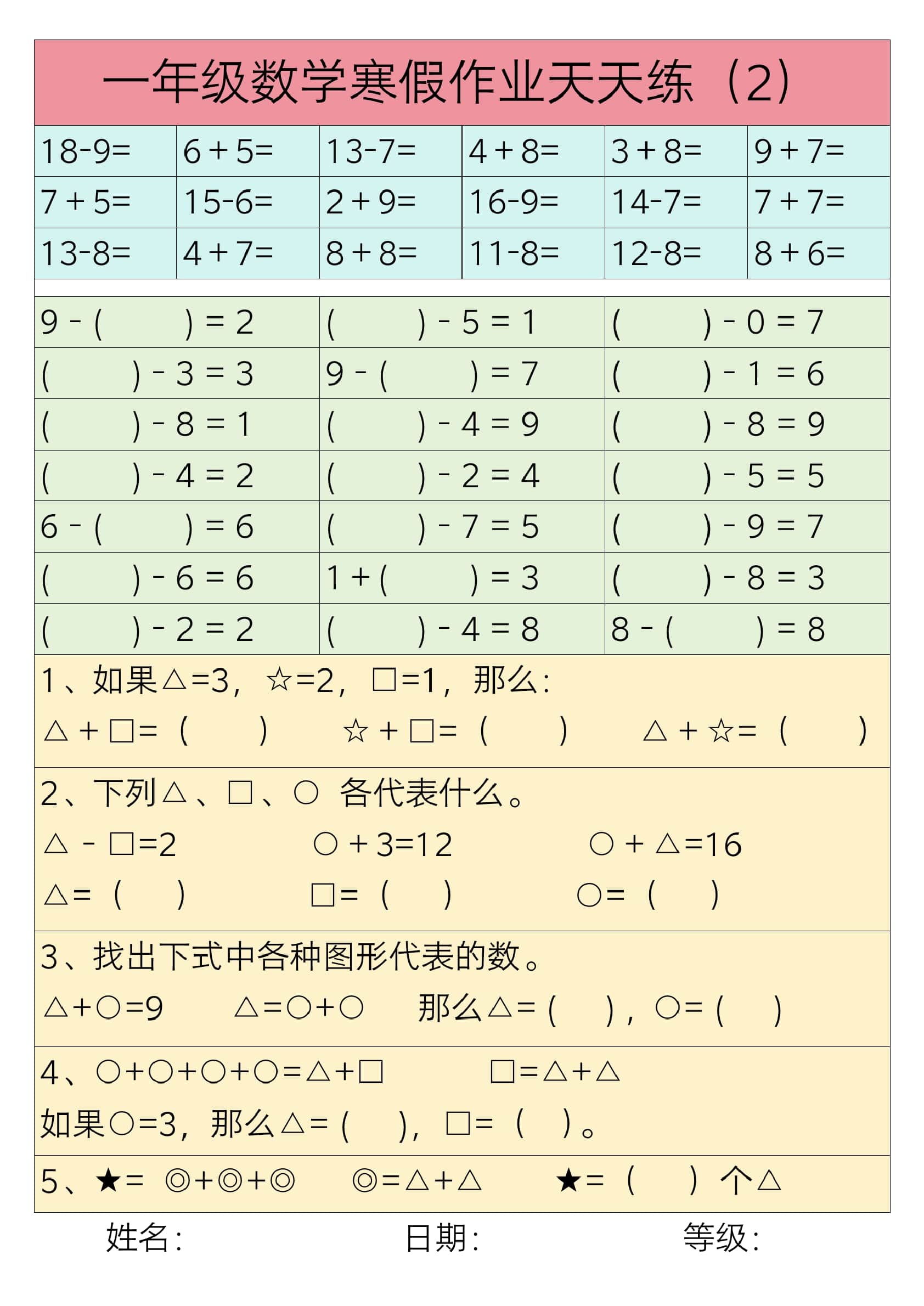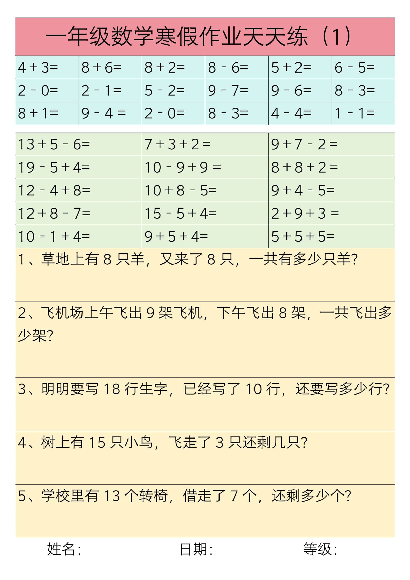 【寒假作业】一下数学寒假作业天天练30天30页 【寒假作业】一下数学寒假作业天天练30天30页